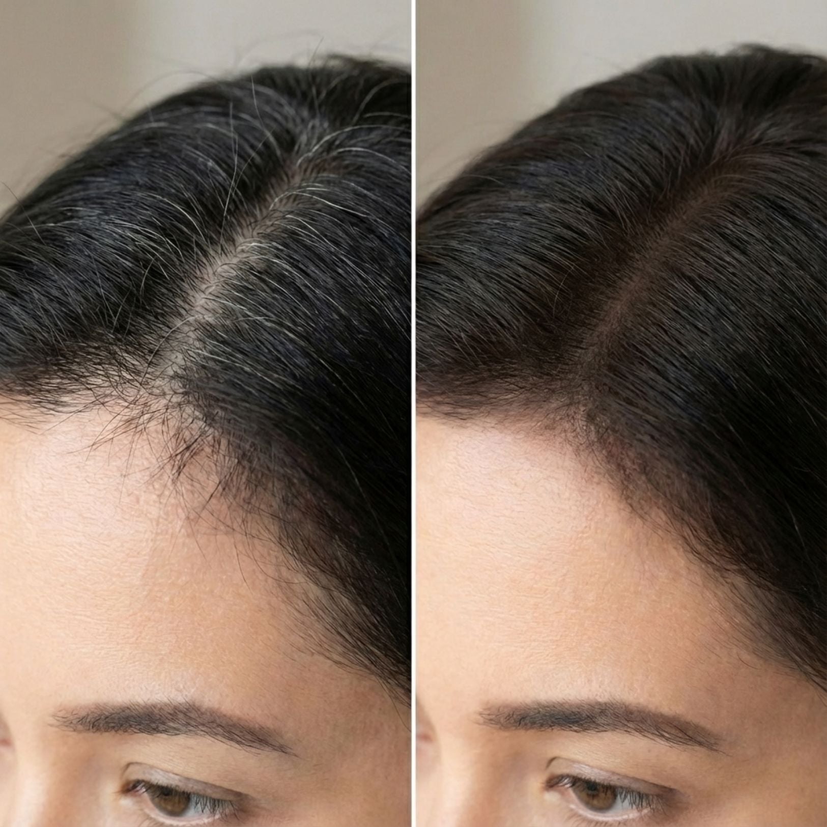 Ser en øjeblikkelig forbedring af tynde områder og skaldede zoner, som om man lige har været hos frisøren.